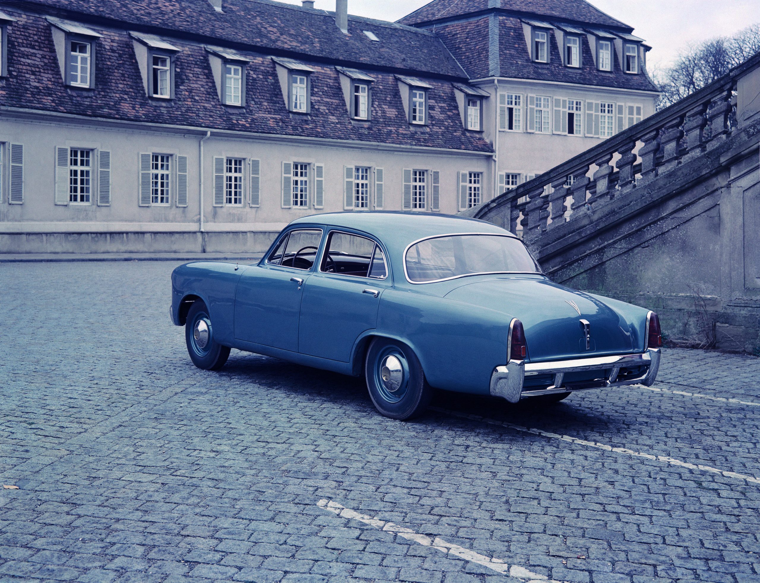What Porsche delivered two years later was a four-door sedan on a 111-inch wheelbase, four inches shorter than that of the Champion. Two versions were delivered: the 542L with an air-cooled engine that produced 98 brake horsepower, and the 542W with a water-cooled engine that generated 106 brake horsepower. Unlike Studebakers of the time, the 542 had a fully-independent suspension, although it did use many Studebaker components, such as door handles, steering wheel, brakes and wheels.